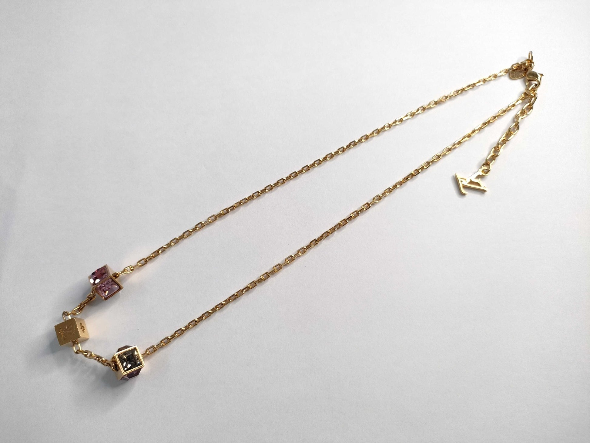 A striking vintage Louis Vuitton necklace featuring a purple crystal centerpiece with a two-tone design. The adjustable chain allows for versatile styling, making it perfect for layering or wearing alone as a statement piece. Elegant and modern, this necklace adds a touch of luxury to any outfit.