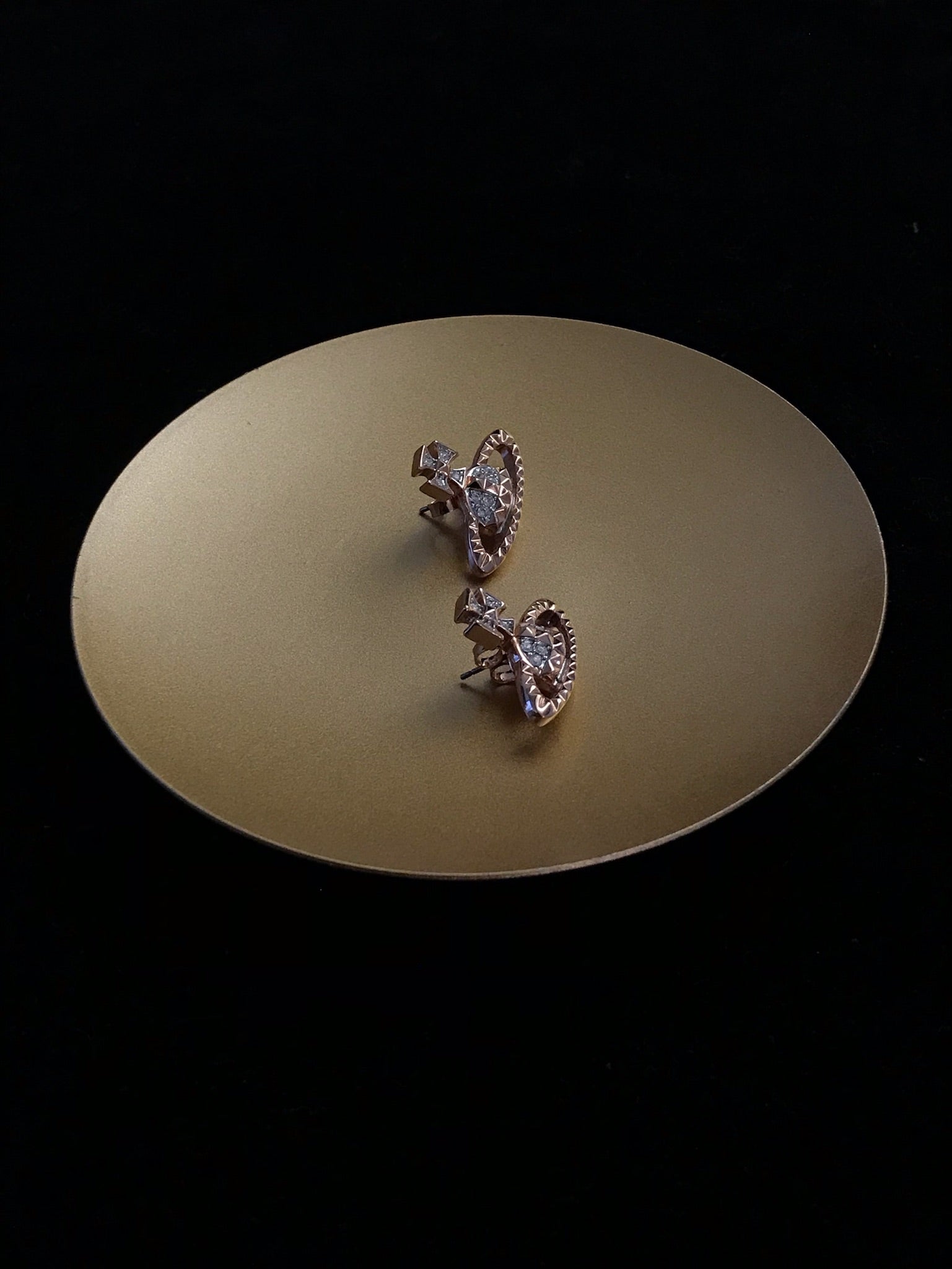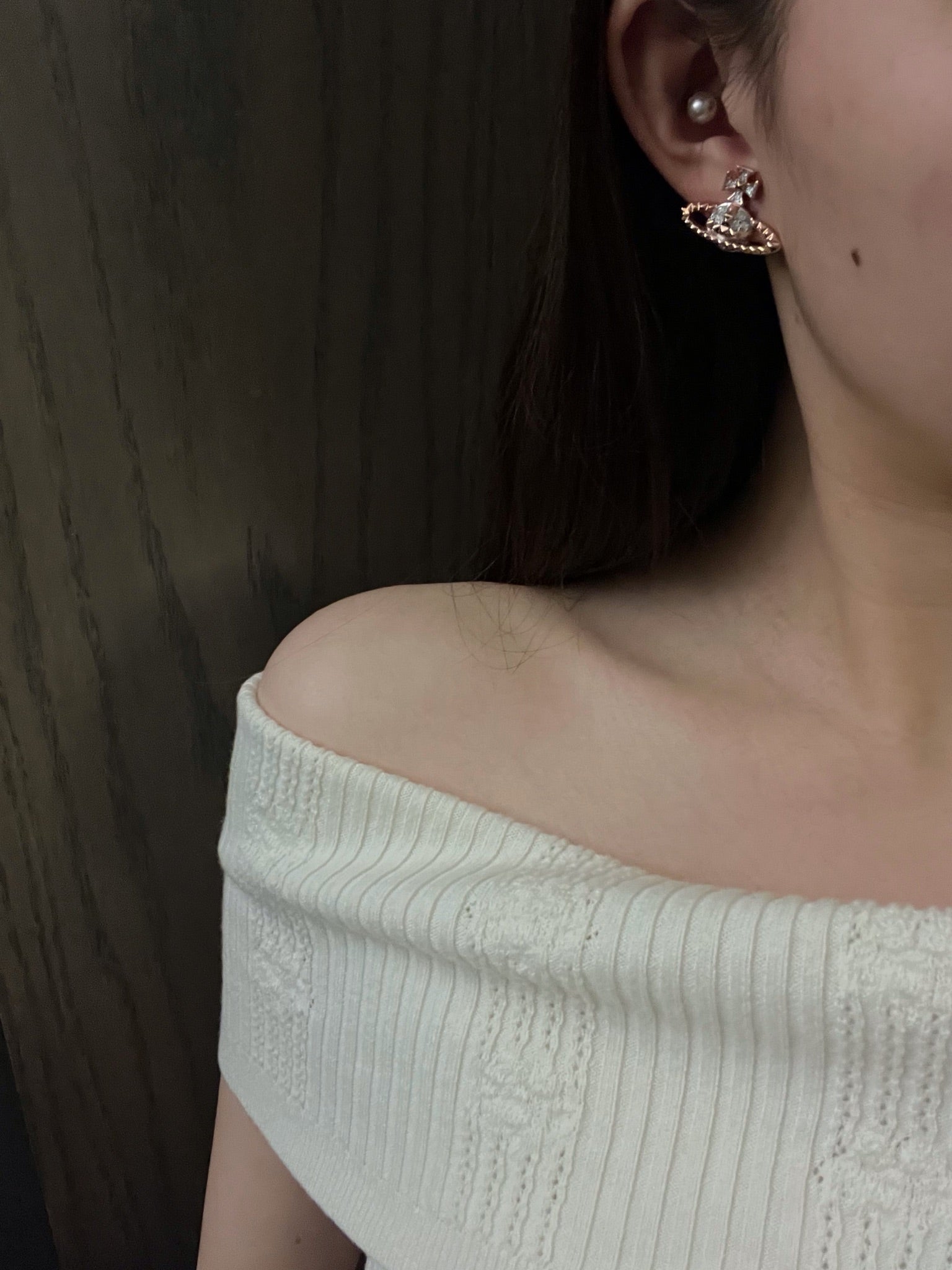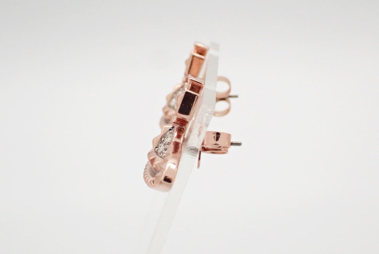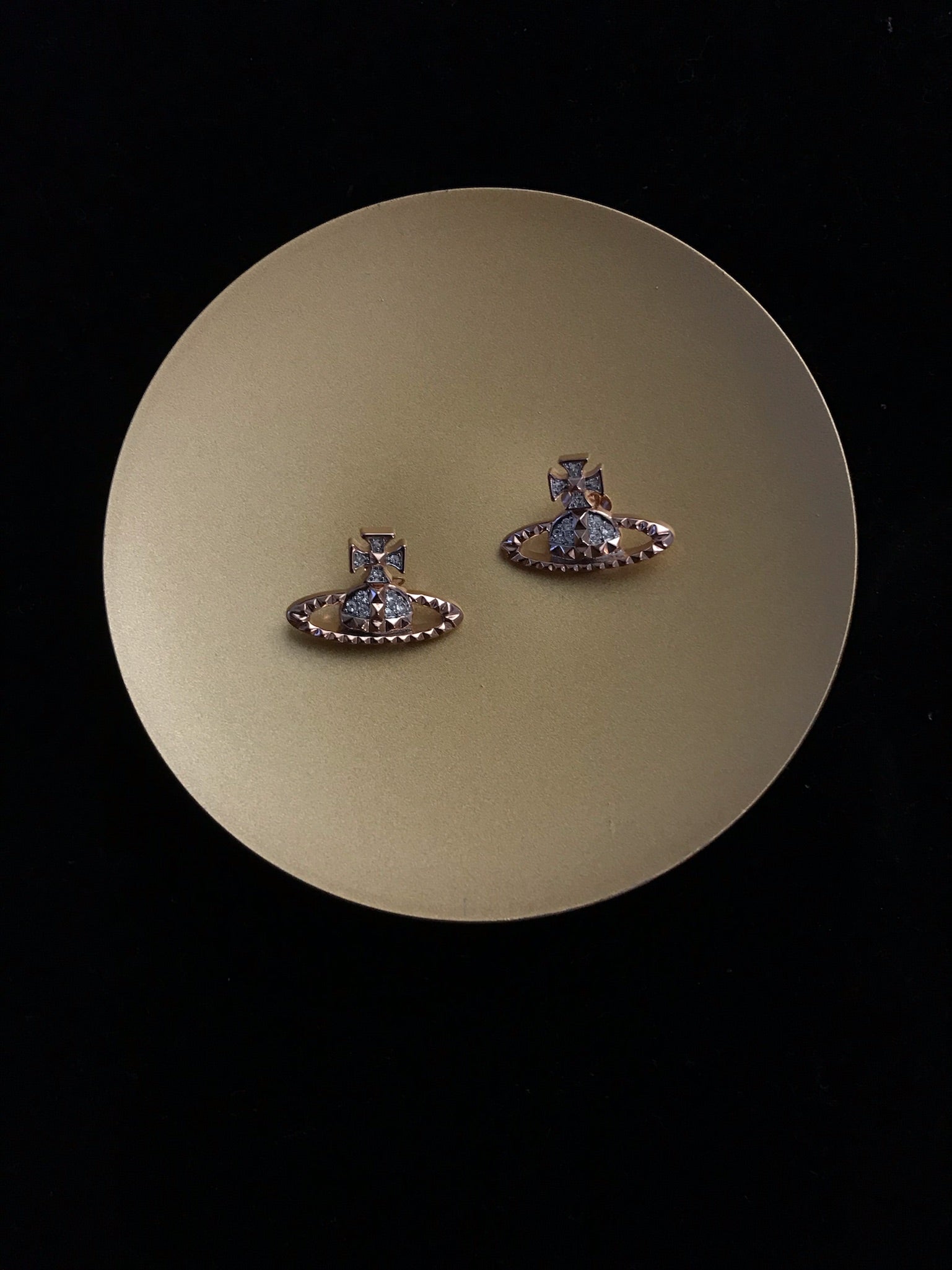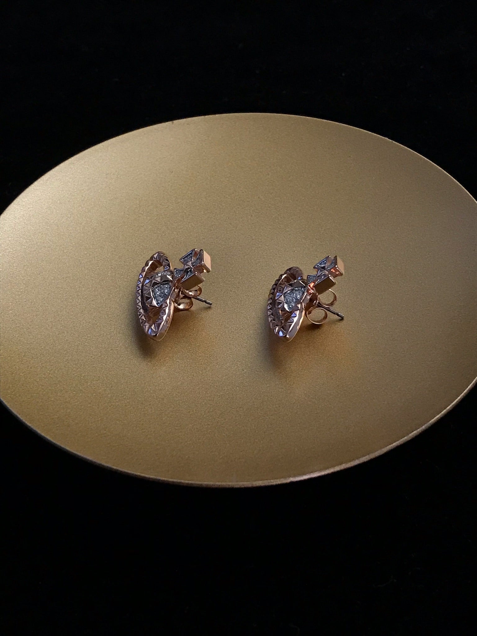 Chic Vivienne Westwood earrings featuring a stylish two-tone rose gold and silver design. Versatile and fashion-forward, these earrings add a subtle statement to any outfit, perfect for everyday wear or special occasions.