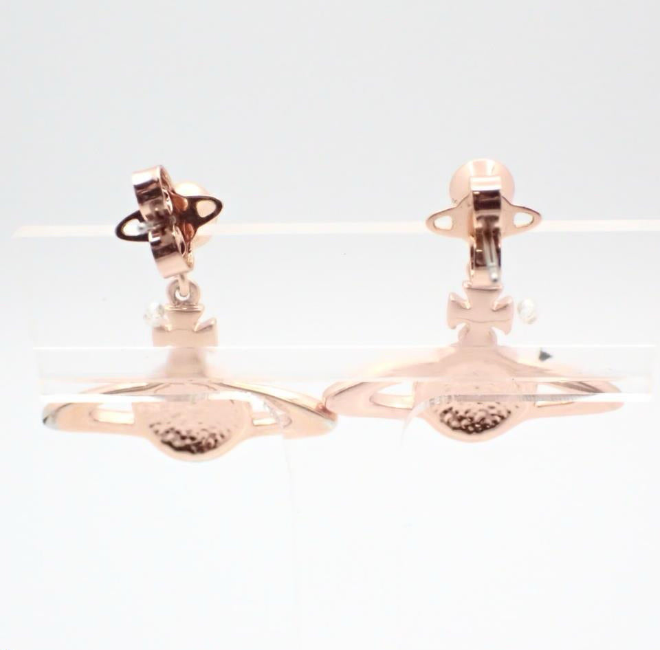 A chic pair of vintage Vivienne Westwood earrings showcasing the signature orb design adorned with sparkling pavé crystals. Finished in warm rose gold tone, these earrings bring a touch of playful luxury and timeless elegance—perfect for elevating both casual and formal looks.